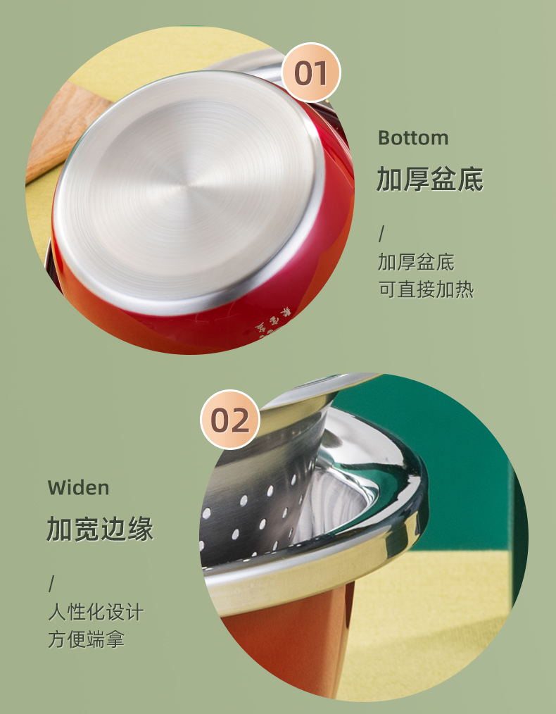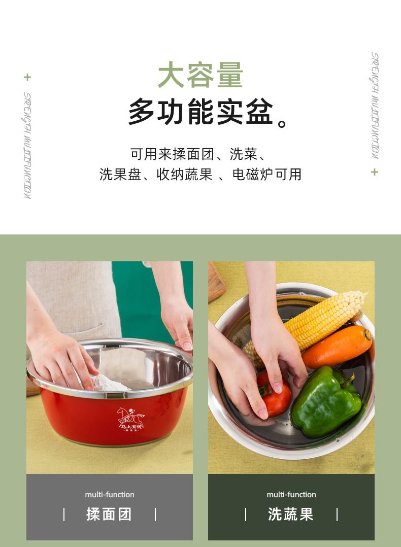 加厚盆,寬邊設(shè)計(jì)方便端拿,精拋工藝,清洗方便。